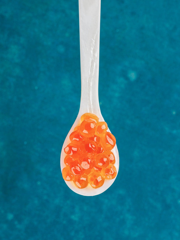 Taste: strong, sweet Color: translucent red/orange Pearl Size: large (5-7mm) Texture: firm Origin: Alaska, United States Species: salmon (O...