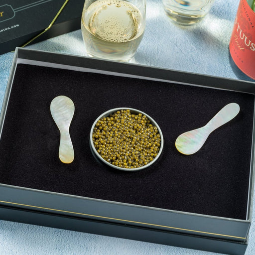 Our Caviar Serving Assortment includes everything you need to properly serve caviar and make it a special occasion: two mother of pearl spoons, bli...