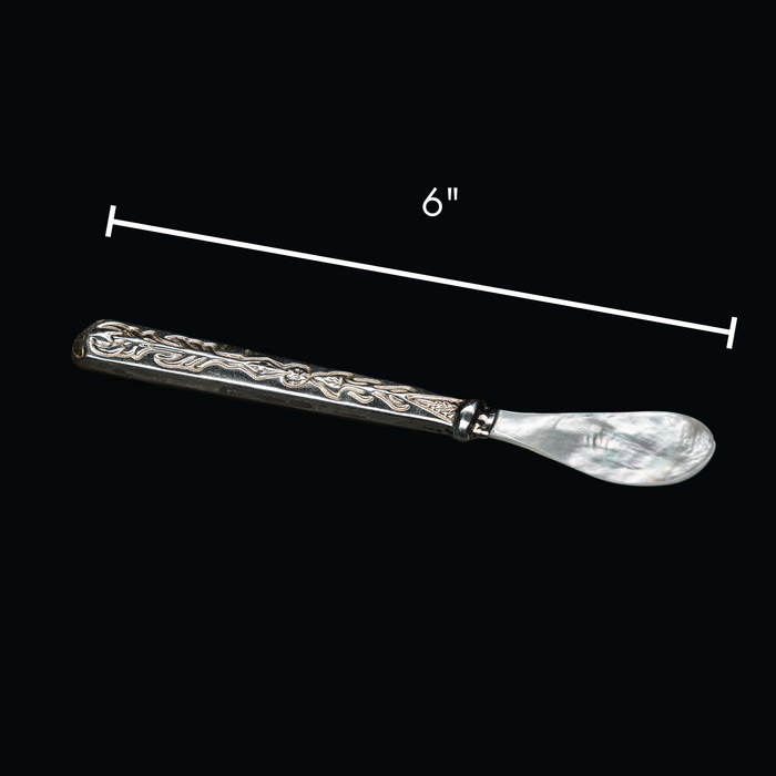 This striking, hand-crafted Embroidered Caviar Spoon is a new addition to our caviar serveware selection. With its decorative handle, it is the perfect serving accompaniment for your holiday parties this season.