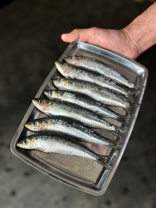For best preparation, rinse the whole fish under cold water for the scales to wash off. Then, slice the middle (head on or head off), and remove the guts and spine. The spine should pull out the rest of the bones. Then, fill with salt, pepper, and herbs. You can also butterfly the fillets instead. We recommend grilling or flash frying before serving on crostini. Watch our filleting tutorial here!